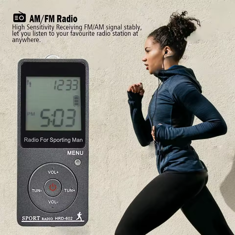 [Portable AM/FM Digital Radio]Pocket portable radio, have high sensitivity reception. Supports AM/FM 2 band stereo radio. FM frequency rangs:60-108KHZ, AM frequency rangs: 9KHZ: 522-1620KHZ /10KHZ:520-1710KHZ. Can store 70 radio stations (50 in FM, and 20 inmedium-frequency wave) [Sport radio with pedometer]This is a sports radio with built-in Pedometer Function, can record your steps, stride length, calories burned by exercise, and distance. Highly portable, putting it in your pocket will not bring you any burden, it is the best partner for sports. [Rechargeable battery]This walkman radio has a built-in 400MAH lithium battery, which has a long battery life and does not require frequent battery replacement, just use the attached USB to charge it. You can judge whether the power level is sufficient according to the battery symbol on the LCD screen. [Multifunctional pocket radio]Fully automatic search and storage of radio stations/rechargeable/step counter/calorie consumption record/calculation of walking distance/key lock design to avoid misoperation/sleep timer and clock function.10-90 mins sleep time can be set in this Mini radio. You can enjoy the radio time before going to bed. [Best Gift]This Personal Mini Radio is easy to carry because it is light enough. Whether it is sports, travel, walking, walk the dog, or cycling, it is very suitable. It can also be used as a perfect gift for parents, children, friends. Material:ABS colour:Silver gray Package Contents: 1 * Radio 1 * Storage Bag 1 * Lanyard 1 * Usb Charging Cable 1 Pair * Headphones(Random color, don't accept the specified color) Only the above package content, other products are not included. Note: Light shooting and different displays may cause the color of the item in the picture a little different from the real thing. The measurement allowed error is +/- 1-3cm.