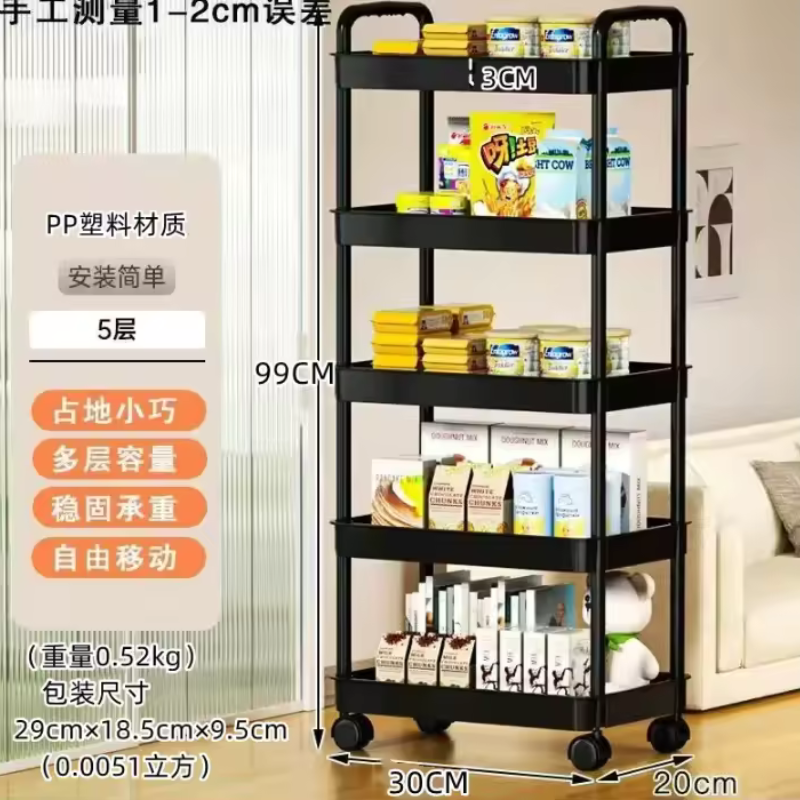 Home kitchen bathroom small cart storage rack, multi-layer snack book, movable with wheels, floor standing storage rack