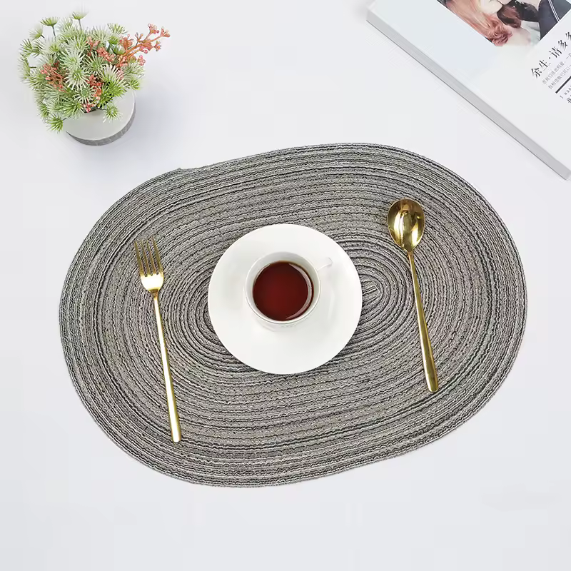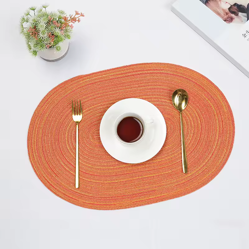 made by 100% high quality eco polyester material. hand-made braided placemats. natural, durable, washable. Available in sets of 1/4/6/10