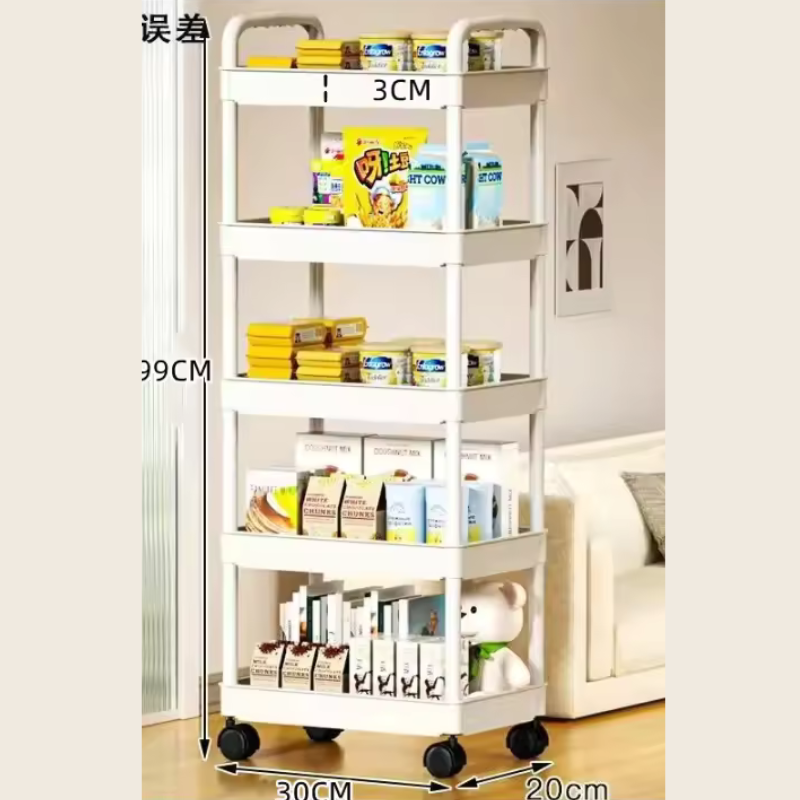 Home kitchen bathroom small cart storage rack, multi-layer snack book, movable with wheels, floor standing storage rack